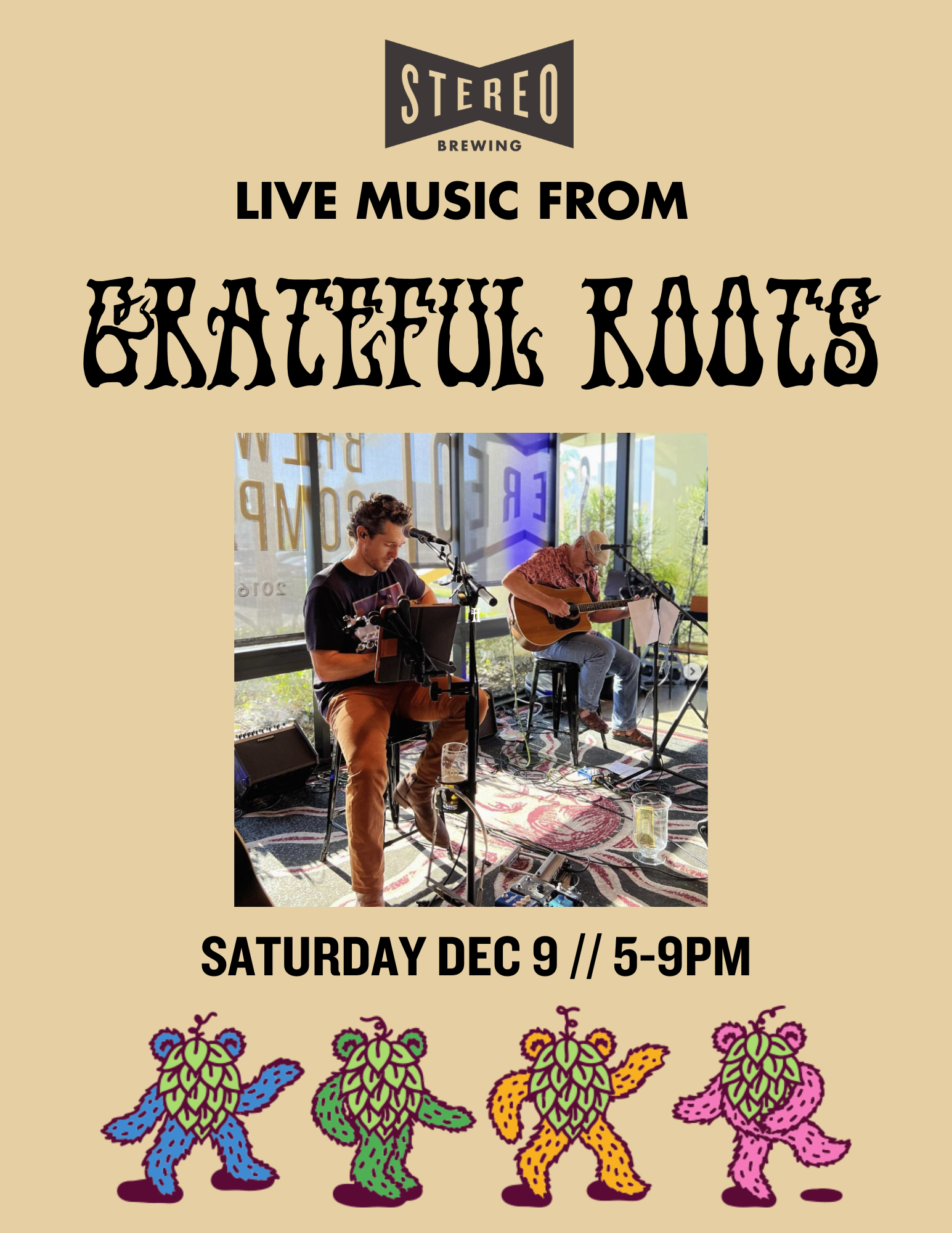Father/Son Duo Grateful Roots is back in the taproom! Join them for classic rock covers and some killer left handed guitar work.